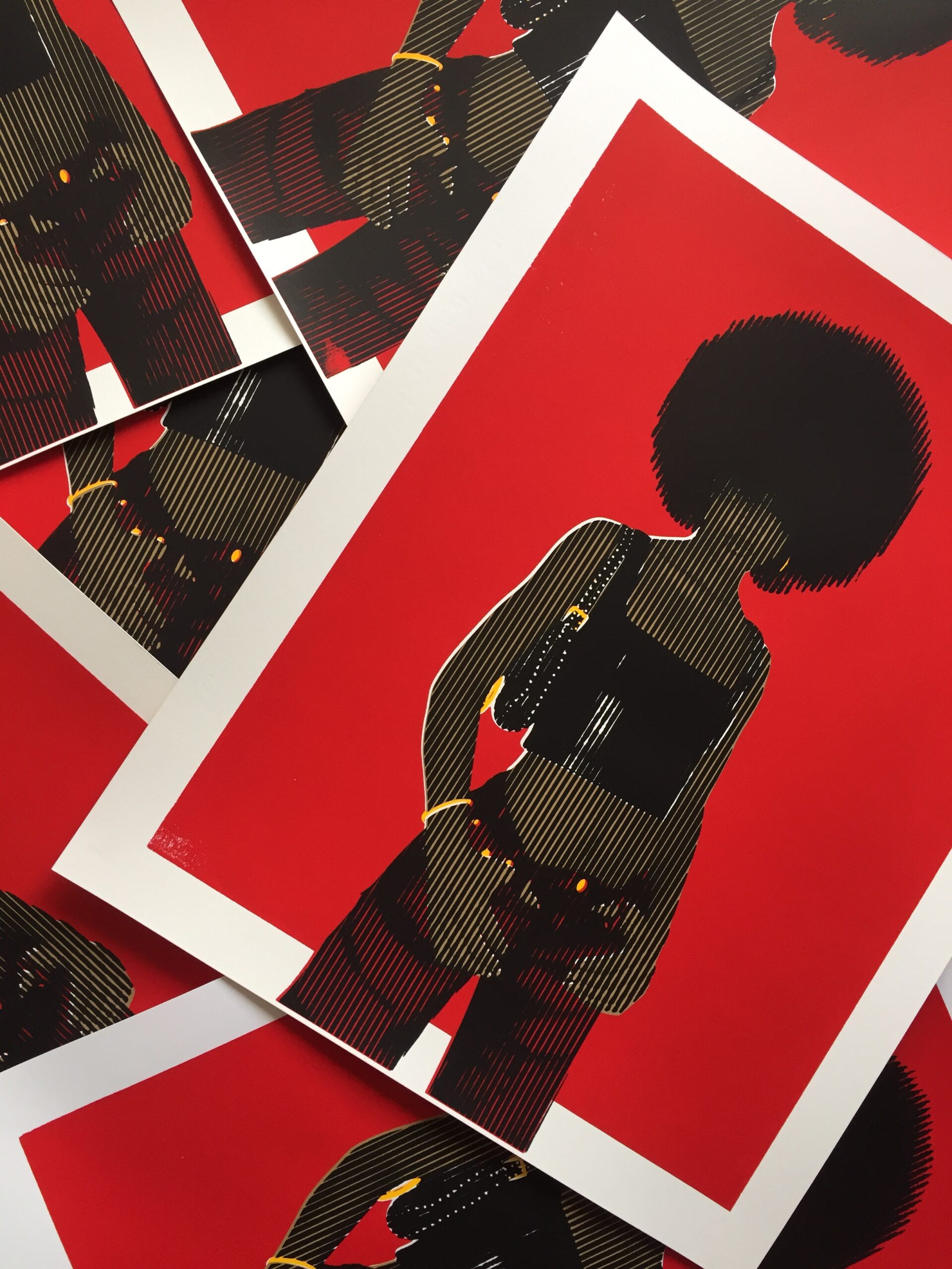 How I would describe my artwork; is minimalist use of form, with bright colors and beautiful color gradients. Pop art style inspired by artists, music, movies and beautiful images in various elaborations such as murals, graphic prints and silkscreen prints.